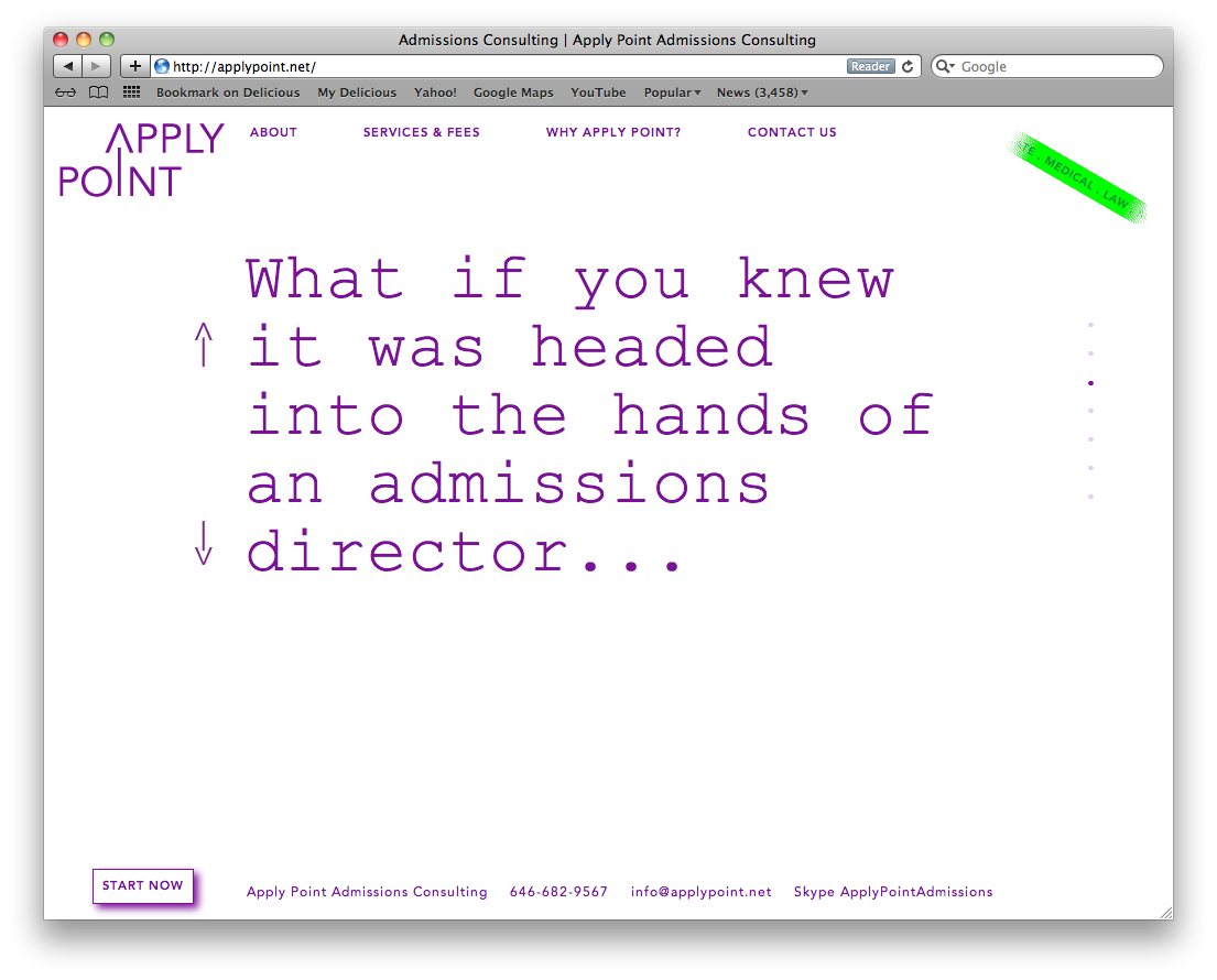 Apply Point is an admissions consultancy for college, grad, and professional programs. Inspired by scantrons and standardized test forms, I created a one-color identity including a series of custom graphics. The